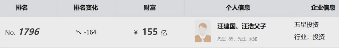 如今,汪建国的商业版图已然成型。汇通达早已在港股上市,孩子王在A股市值稳定在122亿元左右,如今再冲港股;加上独角兽企业好享家以及阿格拉、村鸟网络等多个布局,这份实力也被榜单所印证,2025年胡润全球富豪榜显示,汪建国与儿子汪浩以155亿元财富跻身榜单,其对应的企业主体正是他早年创立的五星投资,行业标签被明确标注为“投资”。