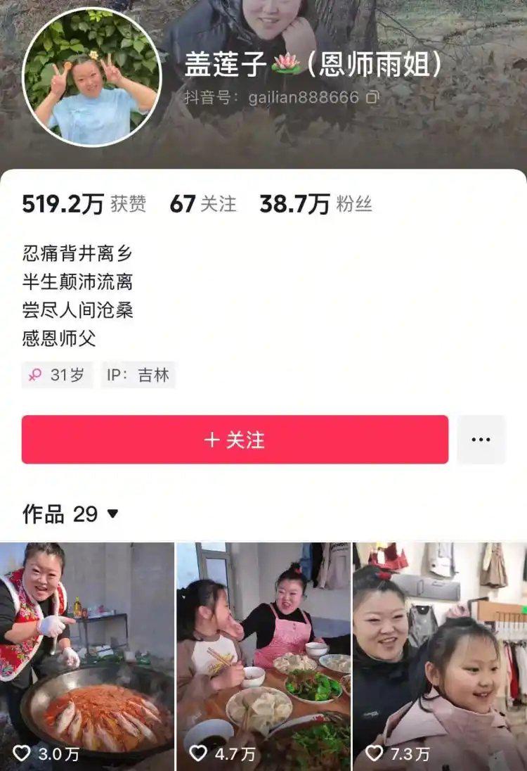 据大河报,今年3月有网友发现,“东北雨姐”的徒弟3月以来开始视频复更。此前设置为私密状态的“雨姐家盖莲子”及“雨姐家大华”账号已重新开放并更新视频,账号内仍可见“东北雨姐”合拍内容。账号名称方面,加上了“恩师雨姐”后缀。