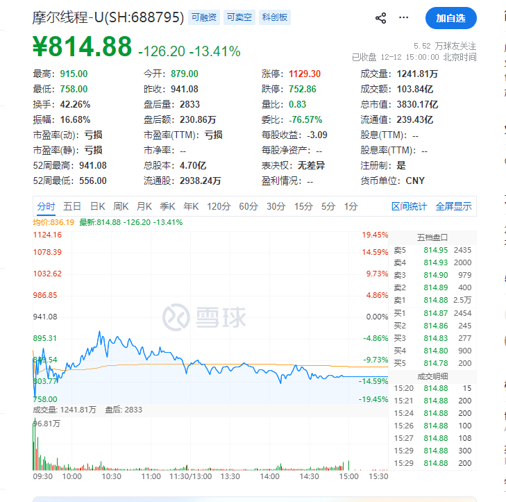于是,摩尔也不负众望,在12月12日股价闪崩,一度暴跌近20%,最终收跌13%,市值蒸发了600亿。对于这样的货源集中的公司,股价炒作不过是资金游戏。