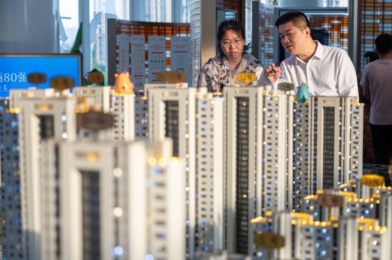 图为山西太原一处商品房小区的售楼部内,市民正在看房选房。(图片由CNSPHOTO提供)