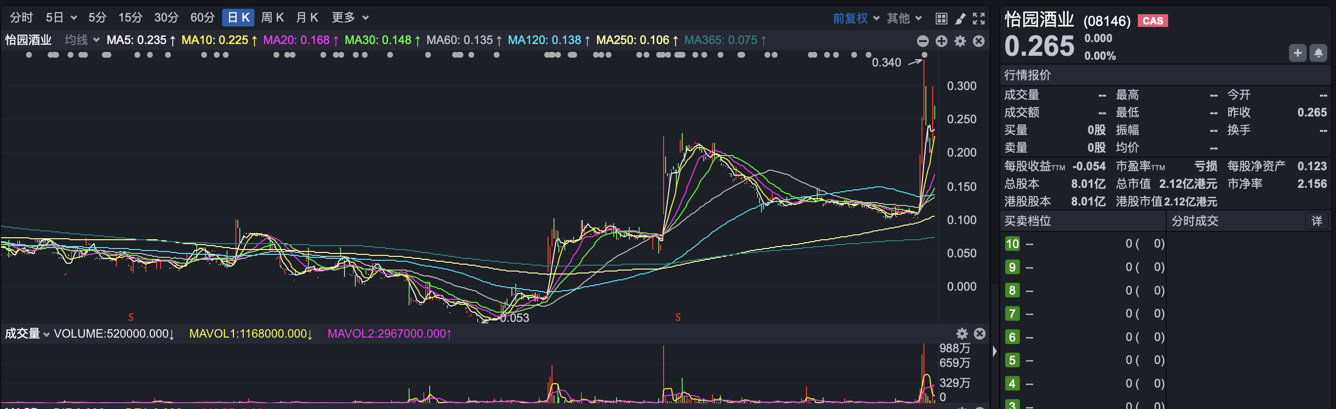 12月10日,怡园酒业发布“停牌公告”,停牌原因“有待刊发有关本公司内幕消息及根据香港公司收购及合并守则而作出的公告”。