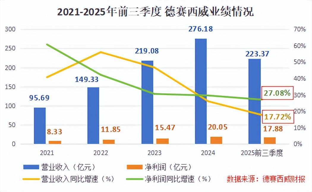 2025年前三季度,德赛西威营业收入和净利润分别又达到了223.37亿、17.88亿,继续保持了增长势头。