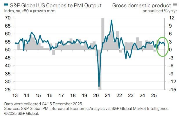 尽管制造商仍在报告产出增长,但销售走弱意味着当前的生产水平难以持续,除非新年需求回暖,否则产量将不得不下调。服务业企业则报告称,这是自2023年以来销售增长最慢的月份之一。