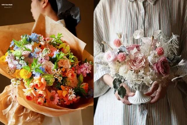 当时微博上已经出现了一些花艺博主、生活方式博主,他们分享着自然风、森系、韩式小清新等风格的花束设计——配色高级、花材特别,包装简约有设计感。而大部分线下花店的审美宛若停滞一般,仍然偏好于“大气、喜庆和花朵多”的传统样式,对新风格接受度低,不愿意改变。