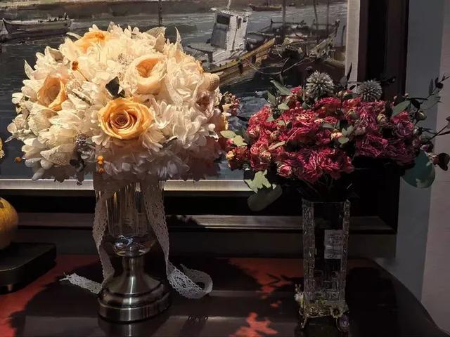 这种对实用性的考量,让他不断扩宽干花的场景边界。比如婚礼上的手捧花,原本大多是一次性的道具,但王杰用干花设计,又搭配了一个花瓶,在婚礼上用完之后,还能放在家里做家居摆件,“结完婚放在家里看着,可以多开心很长一段时间”。