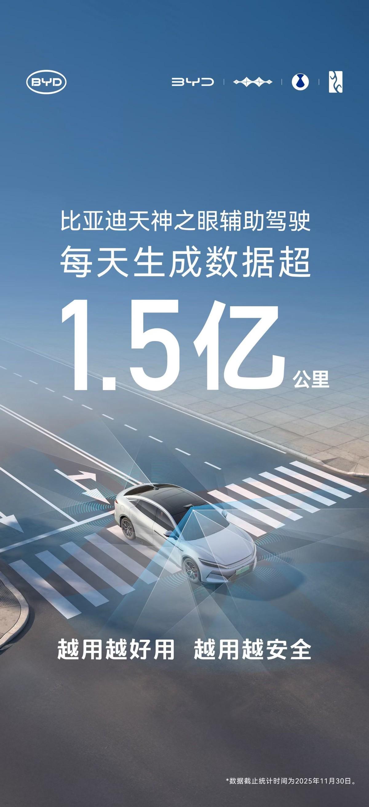 数据显示,截至2025年11月底,比亚迪搭载“天神之眼”驾驶辅助系统的车型累计销量已突破230万辆,持续蝉联中国辅助驾驶车型销量及系统装车量榜首。这标志着比亚迪推动的“全民智驾”战略已取得显著成效,智能驾驶正从高端配置加速向主流市场普及。