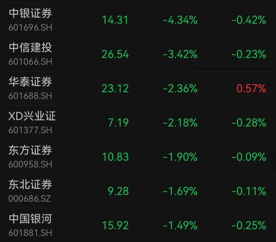 跌幅方面,中银证券跌超4%,中信建投、华泰证券、东方证券、中国银河等纷纷下跌。