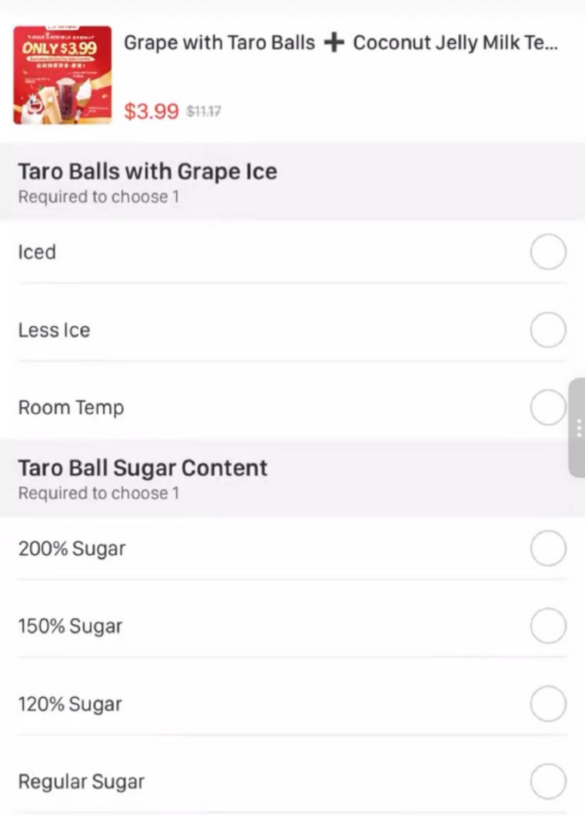 值得注意的是,在套餐选择饮品糖度时,除了常规的正常糖、七分糖、五分糖、三分糖、不另外加糖的选项外,还有120%糖度、150%糖度、200%糖度可选。店铺还温馨提示,取餐时间为12月19日至12月21日早上10点半到晚上9点,地点为蜜雪冰城洛杉矶好莱坞星光大道门店,消费者可到线下门店核销领取。