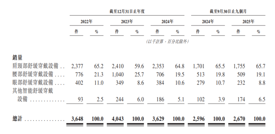 2022年、2023年和2024年,未来穿戴的销量分别达到364.8万件、404.3万件和362.9万件;
