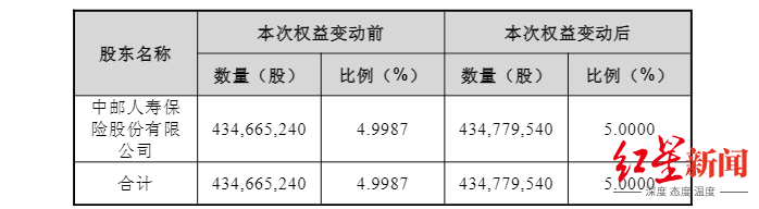 对于买入目的,中邮保险表示,系基于自身发展投资需求和支持上市公司持续健康发展的规划安排进行的长期投资。