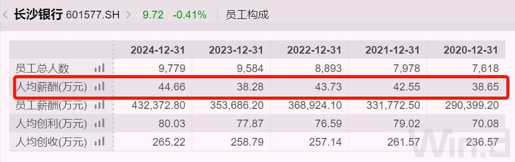 至2024年末,该行职工总数近9800人,去年人均创利超过80万元,人均税前薪酬大约44.7万元,比2023年增加6.4万元。