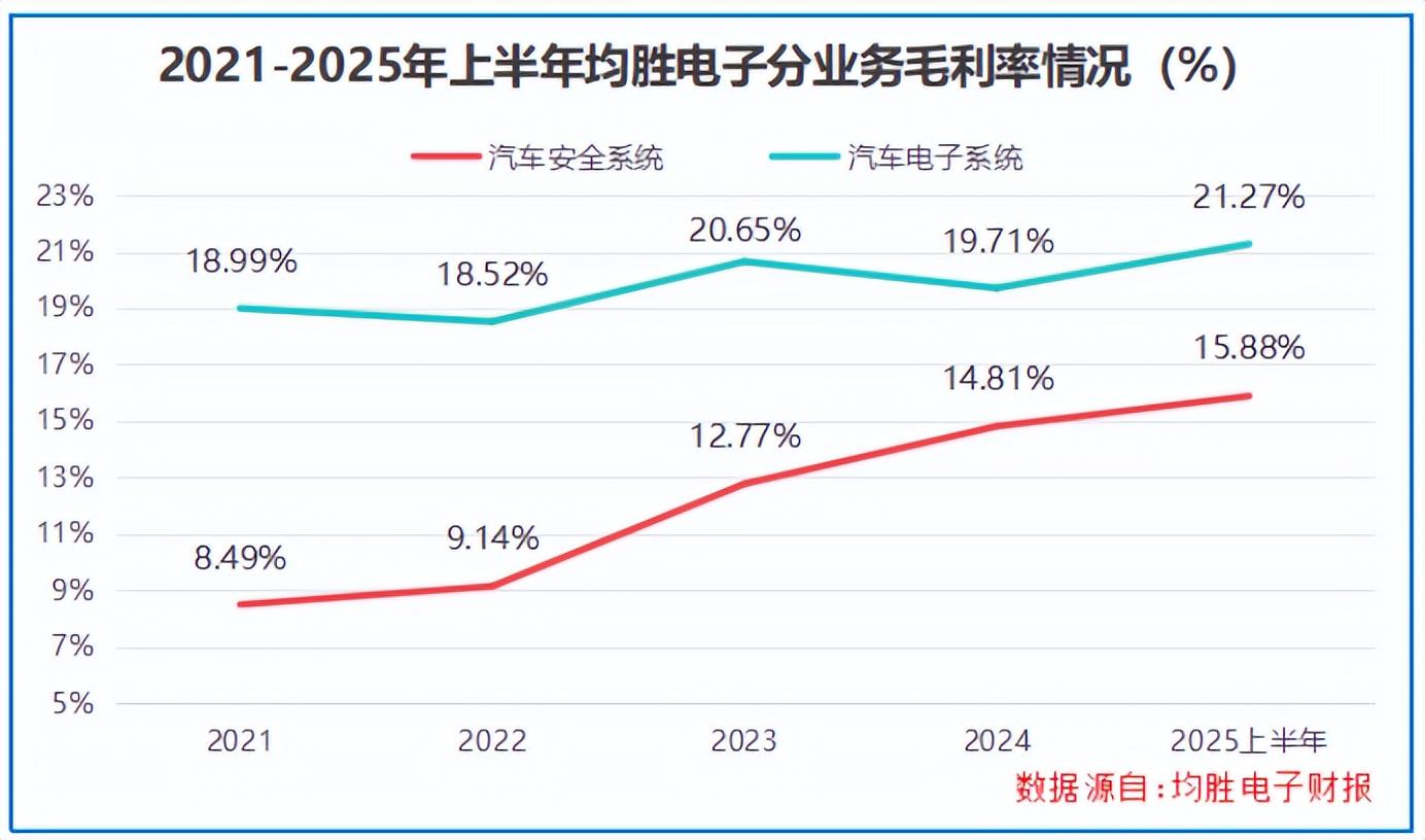 2025年上半年,汽车电子业务毛利率高达21.27%,不仅高于公司整体毛利率水平,更成为拉动盈利增长的核心动力。