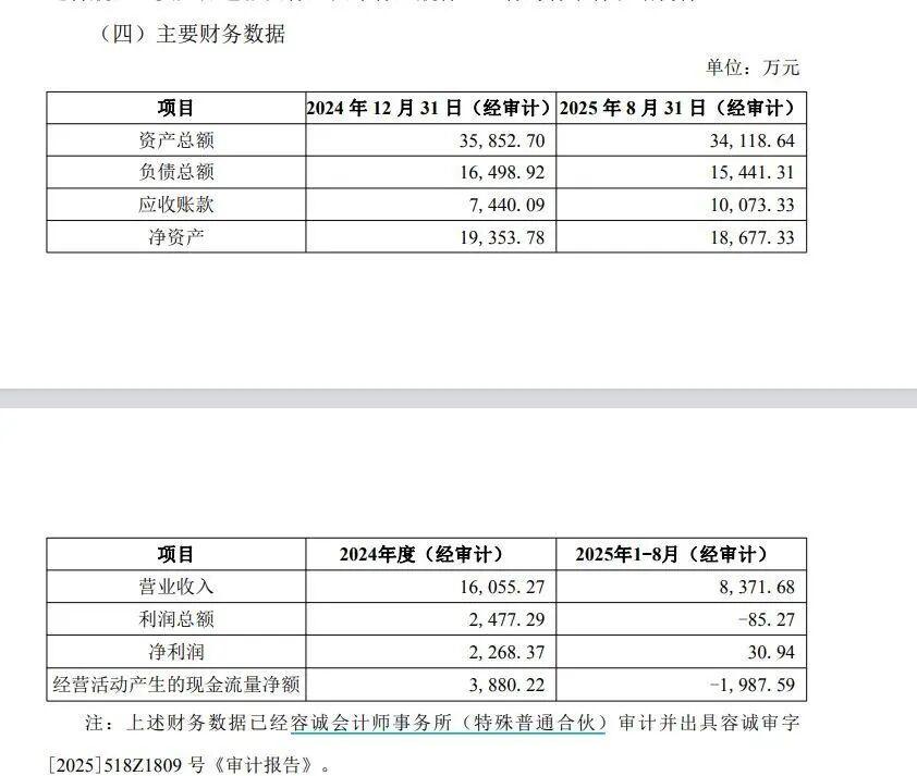 然而到了12月17日,联合精密披露的迈特航空截至2024年底的经审计资产总额为3.59亿元,负债总额1.65亿元,净资产1.94亿元。2024年度,迈特航空的营收1.61亿元,净利润2268.37万元。