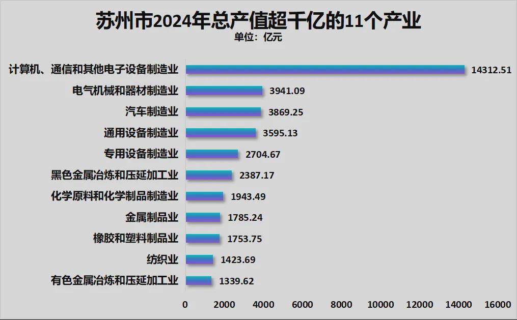 工业第二城苏州,拥有11个千亿产业,其中计算机产业总产值高达1.43万亿元。