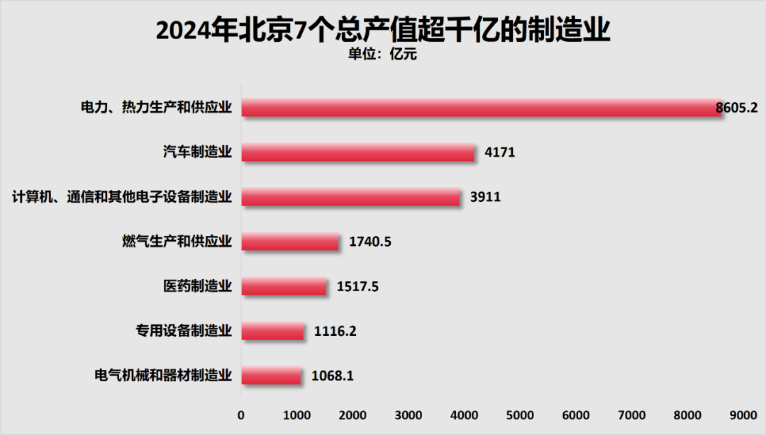 根据北京统计局发布的《2025年统计年鉴》显示,北京有7个千亿产业。