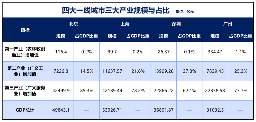深圳则是以工业引领为主,服务业为辅,深圳是工业总产值、工业增加值、工业总营收均位于第一的中国工业第一城。