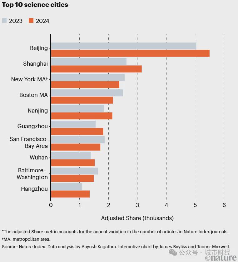 中国首次占据全球科研城市十强榜单一半以上席位。