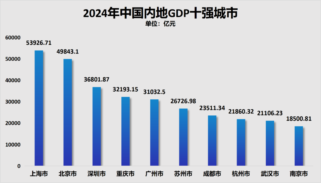 北京2024年的GDP已经直逼5万亿,高达4.98万亿元,与5万亿的差距不到200亿元。