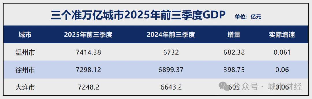不出意外,今年年末将诞生三个新的万亿城市,温州、大连和徐州。