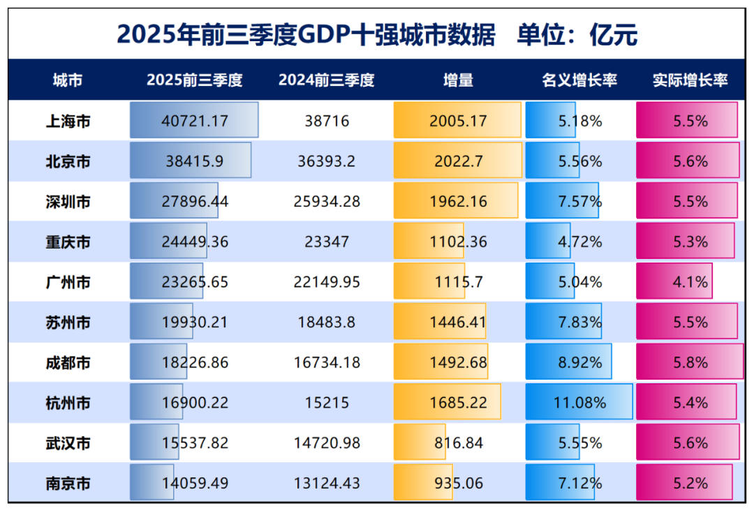 三座城市的经济表现,都很不错,均跑赢了全国大盘。