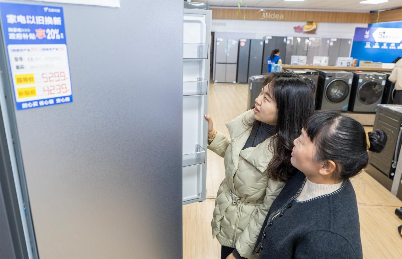 消费者在江苏省南通市的一家家电卖场内选购家电产品。(资料图,图片由CNSPHOTO提供)