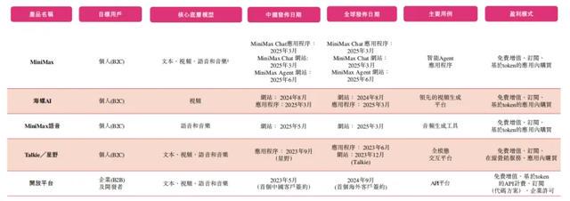IPO招股书显示,基于全球领先的多模态AI大模型,MiniMax已实现B端+C端“双轮驱动”。To B,拥有API开放平台。To C,拥有MiniMax智能Agent、海螺AI、MiniMax语音、Takie/星野等明星产品。