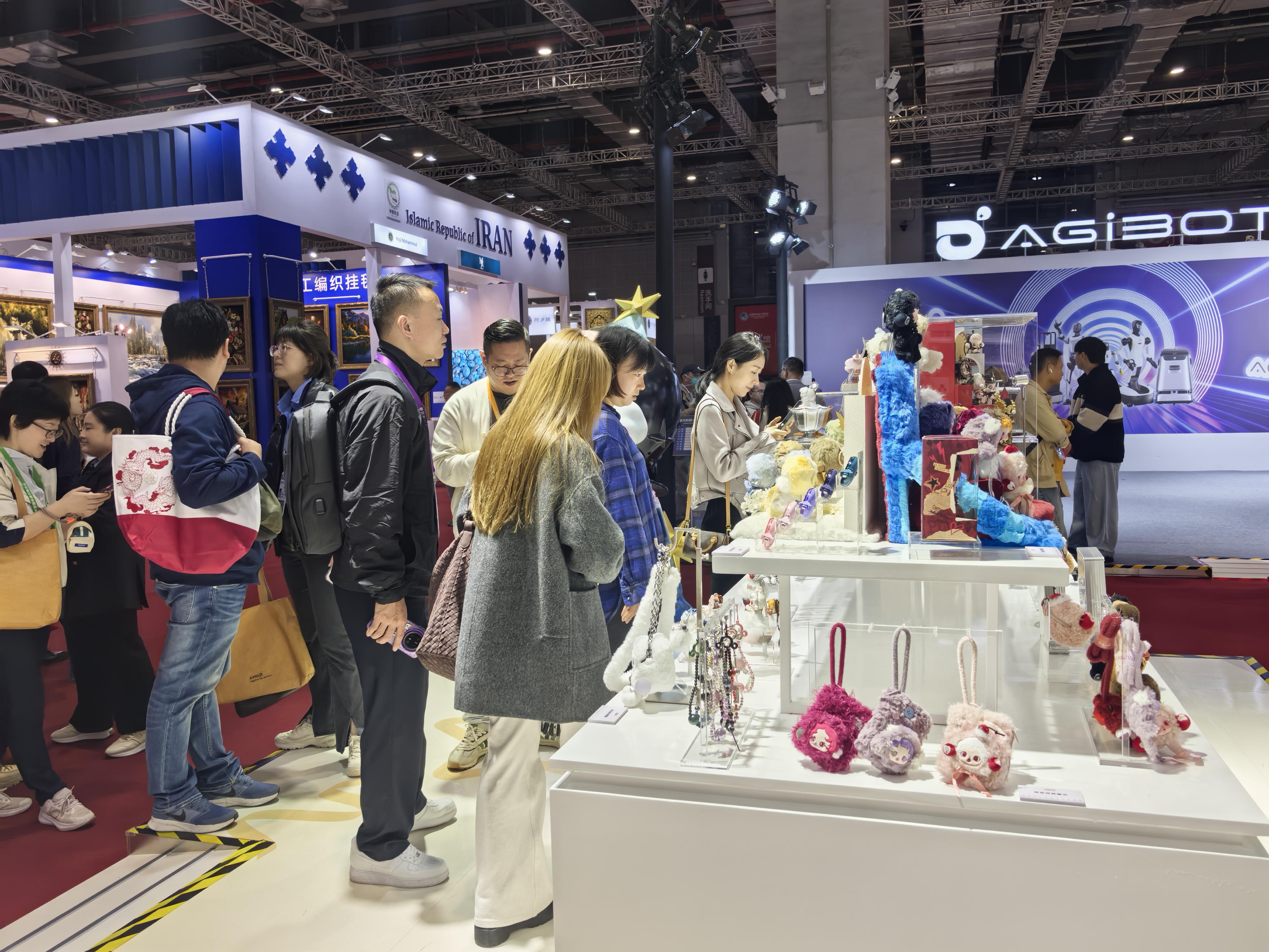 在进博会上,泡泡玛特展出的IP产品人气十足。