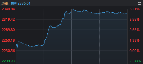 上午约10:30后,造纸板块突然显著拉升,涨幅在1个小时里从不到1%升至超过5%。板块内多只个股在上午收盘前封死涨停。