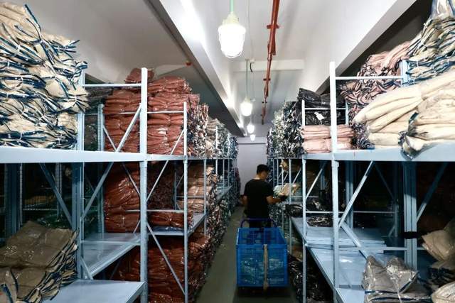工人打包羽绒服