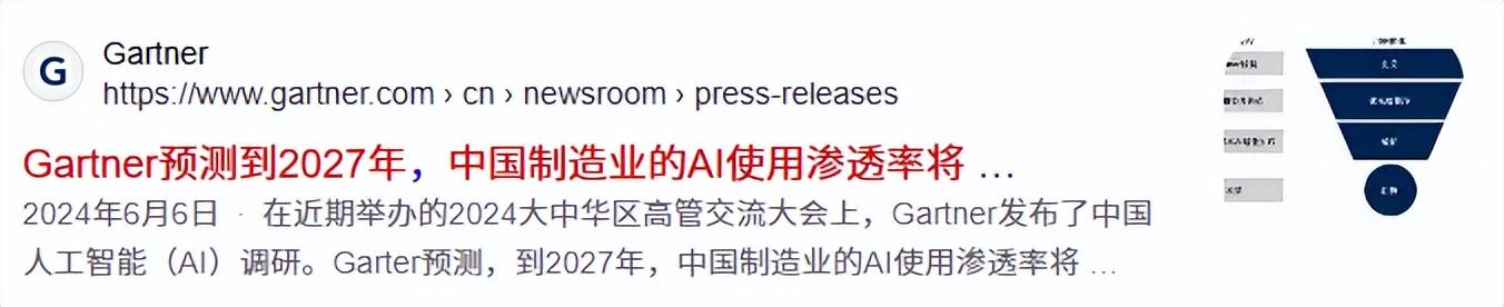 Gartner预测,到2027年,中国制造业的AI使用渗透率将以10%的年复合增长率快速上升。