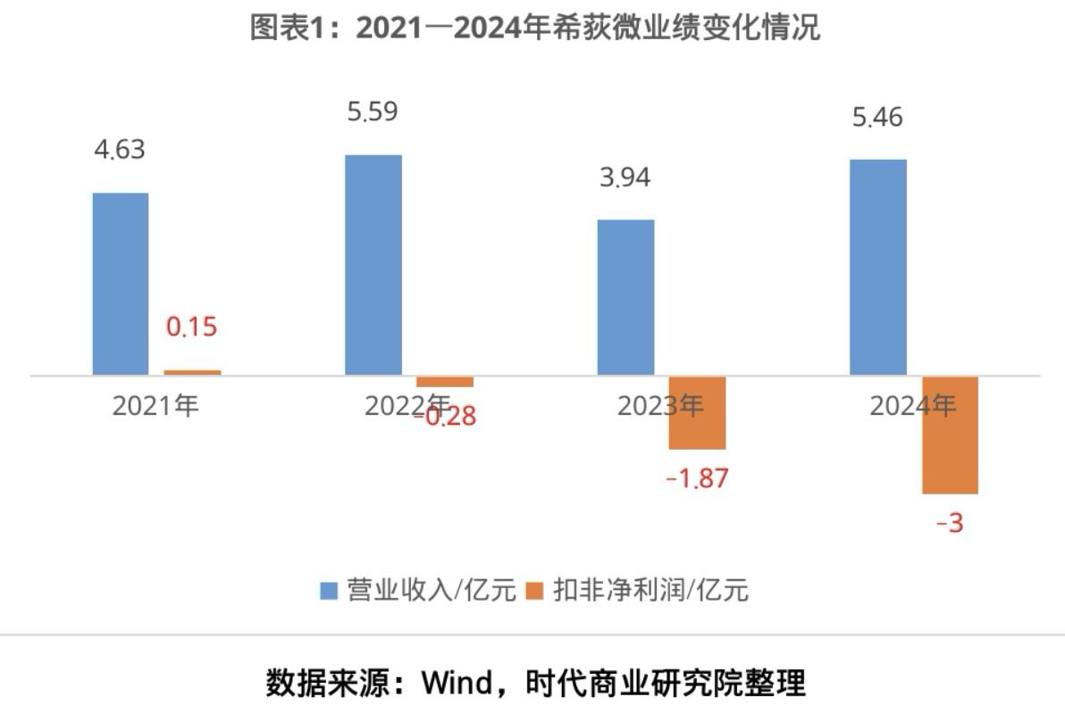 希荻微的业绩变脸始于上市首年。2022年登陆科创板时,该公司扣非净利润从2021年的1534万元骤降至-2761万元,同比大幅下滑280.01%,盈利态势瞬间反转。此后亏损缺口持续扩大:2023年营收同比下滑29.64%至3.94亿元,扣非净利润亏损额攀升至1.87亿元,同比下滑578.24%;2024年营收虽有所回升,但扣非净利润亏损额进一步扩大至3亿元,在亏损泥潭里越陷越深。
