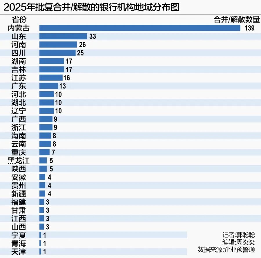 2025年,中小银行整合成效显著。截至2025年12月26日,全年经批复合并、解散的银行机构达394家。仅第四季度,完成合并解散的机构数量就超过136家,约占全年总量的34.5%。