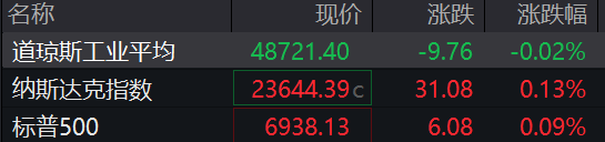 12月26日,美股三大指数开盘涨跌不一,道指跌0.02%,纳指涨0.13%,标普500指数涨0.09%。