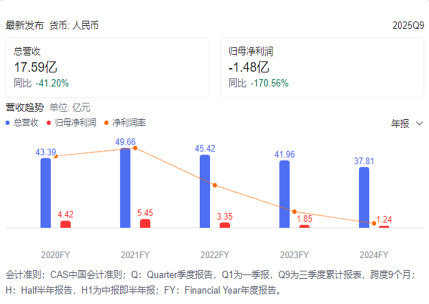 毛利率这一反映企业盈利能力的关键指标,也从2022年的64.65%骤降至2025年上半年的49.57%,净利率更是直接由正转负,跌至-8.75%。