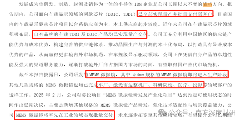 2019年以来,公司通过收购、入股方式积极向半导体业务布局,当前聚焦MEMS微振镜与车载显示驱动芯片(DDIC/TDDI)两大赛道。