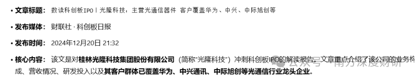 而且,光隆集成的母公司“光隆科技”曾在向科创板提交IPO申请,2022年主动撤回。据媒体报道,光隆科技的客户包括华为、中兴通讯、中际旭创等光通信行业龙头企业。