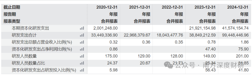 具体从研发情况来看,也体现了转型加速、投入加码的情况。最近两年,公司研发投入和研发人员配置均有所提升,凸显了公司向半导体转型的需求,但最近两年资本化率比例达到了50%左右,短期美化了报表利润,如果进行估值的话,需要打点折扣。