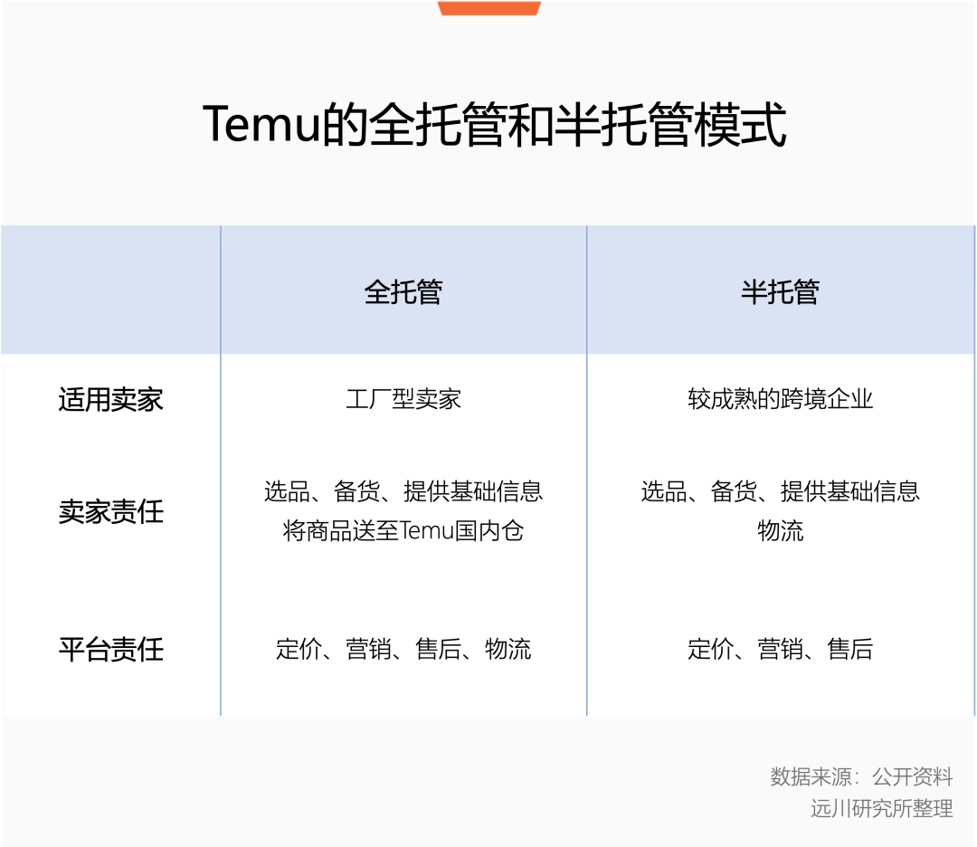 基于这个思路,Temu针对成熟的跨境企业提供了“半托管”模式。“全托管+半托管”完美适应了中国高度成熟的供应链与全球消费市场的连接,这也是Temu高速增长的底色。