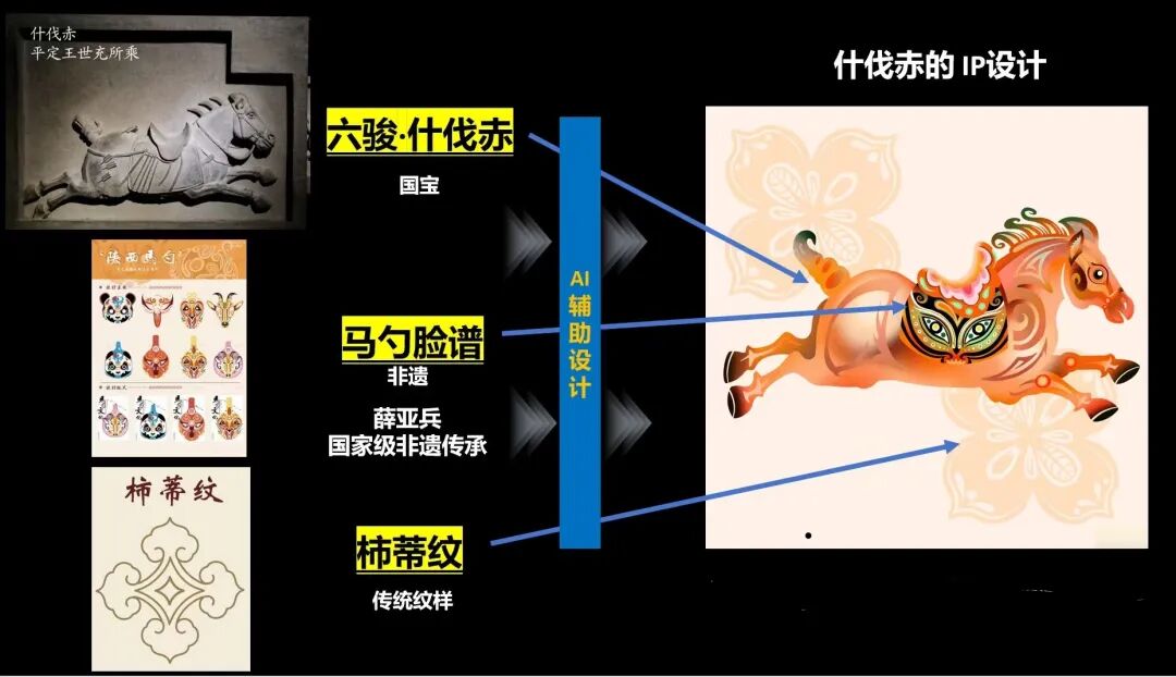 非遗传承的破局,更需要技术与艺术的巧妙碰撞。我国非遗传承人平均年龄已经63岁,年轻人参与度不足15%,很多技艺因为没人学、没渠道传播,正慢慢消失在时光里。华为与陕文投的实践,给非遗传承找了条接地气的新路子:他们把昭陵六骏和陕西非遗紧紧绑在一起,青骓对应旬邑剪纸的锐利线条,拳毛騧融入华县皮影的镂空雕刻,什伐赤采用马勺脸谱的神性与威慑……每一匹战马都成了非遗技艺的活载体。通过AIGC技术生成的短视频、文创产品,非遗不再是博物馆里冷冰冰的展品,而是年轻人愿意分享、愿意购买的潮流符号。
