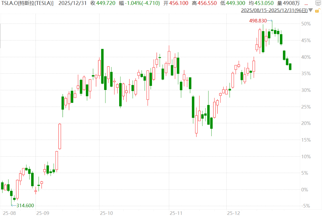此后,特斯拉股价迅速反弹,并于去年12月22日创下历史新高。