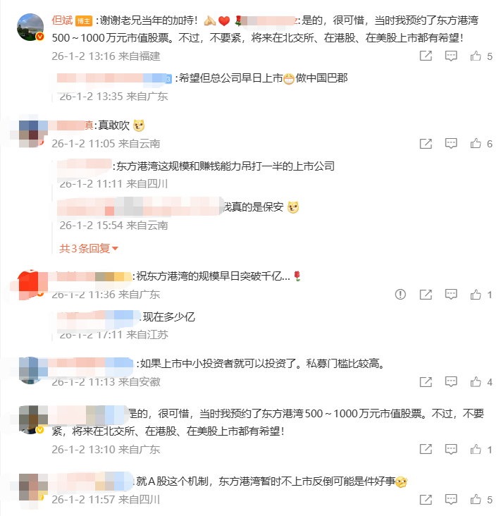1月2日消息,新年伊始,知名私募大佬但斌发微,表达了对东方港湾错失上市的遗憾。
