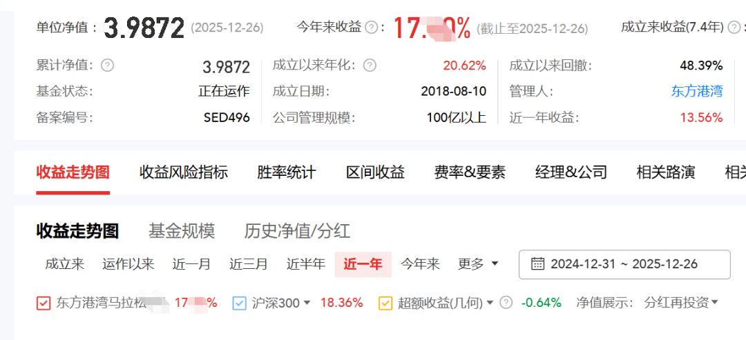 比如东方港湾在20年至22年,三年业绩大幅回撤,对股价杀伤力应该也很大;23年和24年业绩惊人,对股价应该会有较好刺激。而在25年,东方港湾业绩再度回归平凡,大部分产品今年业绩不足20%,跑输沪深300基准。
