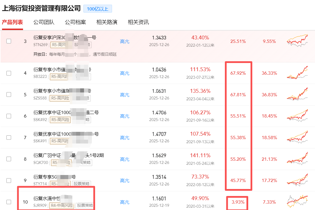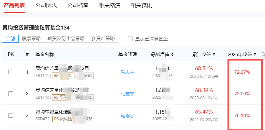 2025年掉队“四大天王”的灵均投资,Q3规模400-500亿,和头部差了至少200亿,但是25年量化业绩在所有量化中最牛,2025年业绩批量60%以上,在私募排排网中展示的3款产品收益更是超70%。掉队可能和24年卖出被处罚有关。