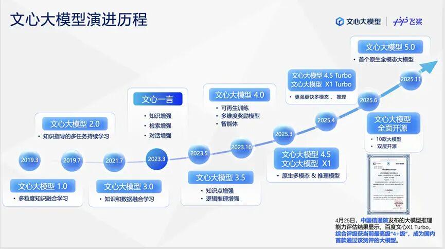 在模型层,文心大模型5.0采用原生全模态统一建模技术,参数规模达2.4万亿。