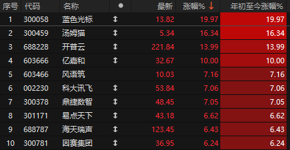 机构普遍认为今年AI应用必须要爆发,否则AI硬件投入将会遭受怀疑,所以不管是看好AI,还是分散AI硬件的风险,机构都有动力增配AI应用。节前AI应用已经大涨过,今天再度暴涨,蓝色光标、卓易信息、当虹科技等多股涨停。