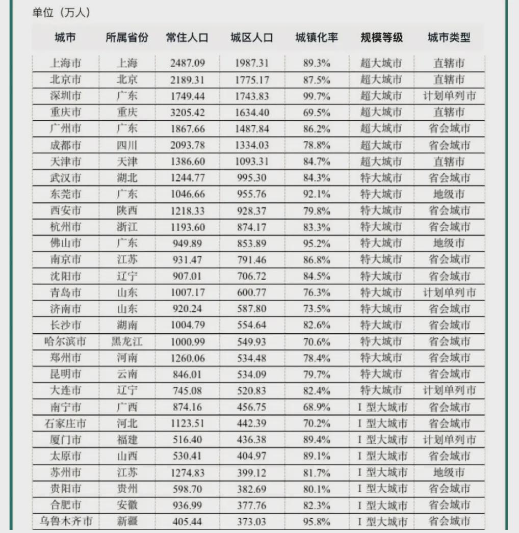 要注意的是,这里的人口规模是指城区常住人口,而不是全域常住人口,也不是城镇常住人口。