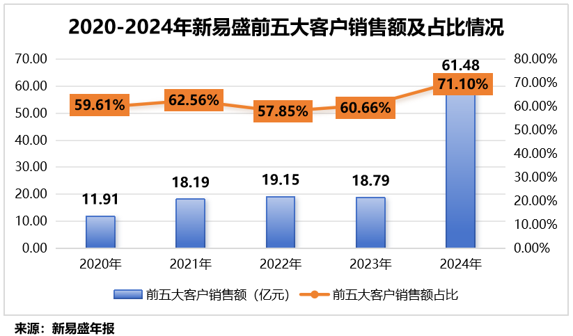 以2024年为例,公司前五大客户的销售额达61.48亿元,占总营收的71.1%其中,第一大客户的销售额占比就高达31.74%。