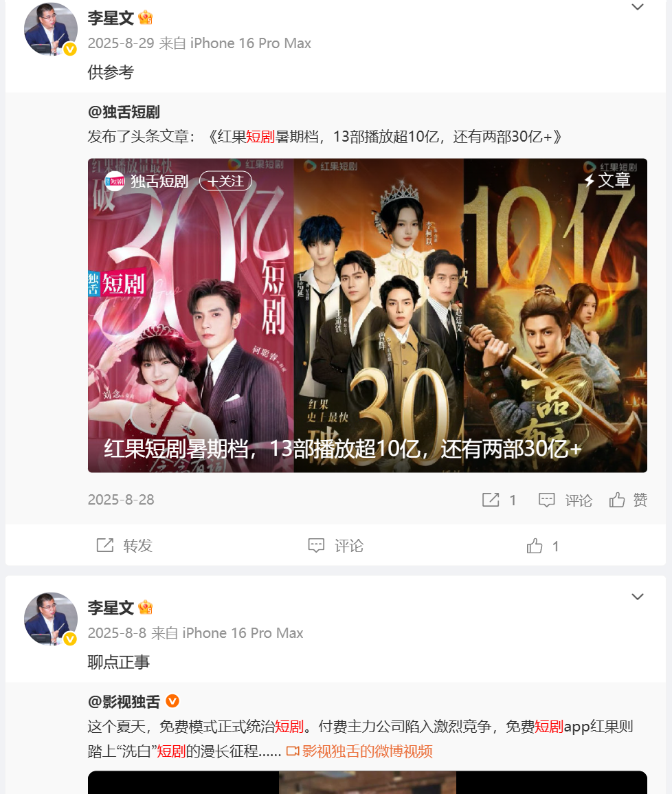 2025年可以说是短剧的重大转折年,一年的时间里短剧行业从内容荒蛮生长进入到了精耕细作的状态。大家对短剧的态度发生了重大转变,2025年以前,多数剧评人、影评人耻于去看短剧,而2025年以来不少影评人都开始愿意分享关于短剧的所见所闻,这无形当中也在体现行业发生了“翻天覆地”的变化。