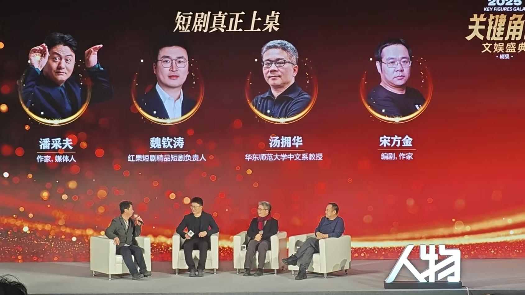 2026年1月7日,《人物》2025关键角色·文娱盛典上,红果短剧精品短剧负责人魏钦涛、华东师范大学中文系教授汤拥华、编剧/作家宋方金以“短剧真正上桌”为题展开了畅谈。