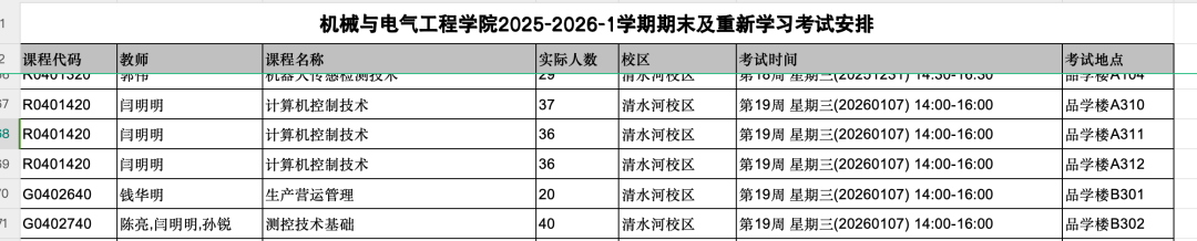 微成都注意到,创业同时,闫明明也没落下电子科大的教学任务,根据电子科技大学机械与电气工程学院官网信息,1月7日的学院期末考试信息里能看到,闫明明依旧承担着《计算机控制技术》《测控技术基础》等课程的授课工作。
